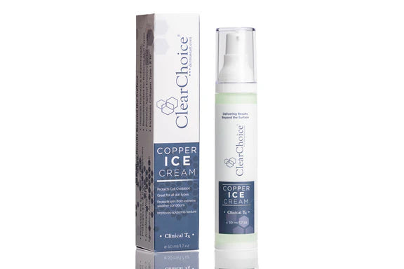 CopperICE Cream maintains its natural bio-protective properties and promotes keratinocyte growth with fibroblast adhesion for a skin regenerating effect. Using daily will enhanced wound healing, skin firmness, elasticity, reduces the appearance of wrinkles, and promotes cellular turnover.